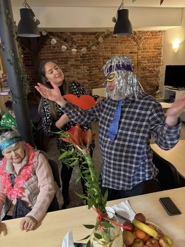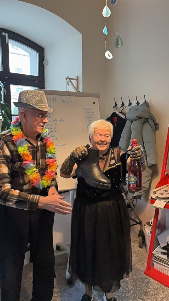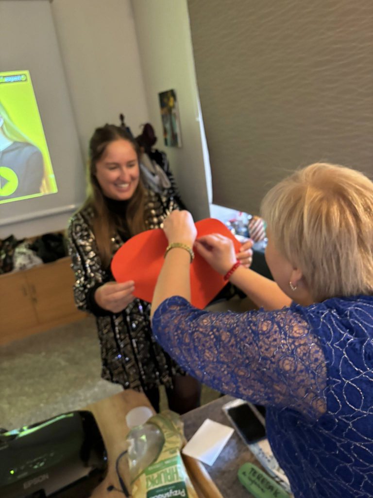 Obieraliśmy jabłka dla najdłuższej obierki, nakłuwaliśmy śmieszne serduszka, zrobiliśmy wyścig butów o niesamowitego szampana z XIX wieku (piccolo) oraz prezentację o naszych imionach. Było też dużo ruchu, tańca i radosci! Taki to był dzień ![]()